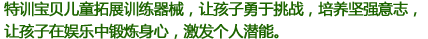 滄州華北特訓(xùn)器械有限公司成立于2002年,是專業(yè)研發(fā)生產(chǎn)心理行為訓(xùn)練器械、拓展器械、拓展器材、攀巖、兒童拓展器械的專業(yè)型企業(yè),并通過ISO-9001質(zhì)量管理體系認(rèn)證及ISO-14001環(huán)境管理體系認(rèn)證,致力于各職業(yè)群體提供的心理行為訓(xùn)練器械、拓展器械、攀巖、兒童拓展器械等設(shè)備,使之不斷提升心理健康水平、充分開發(fā)自我潛能。我公司竭誠為廣大客戶提供專業(yè)化各類心理行為訓(xùn)練器械相關(guān)產(chǎn)品和服務(wù)。
